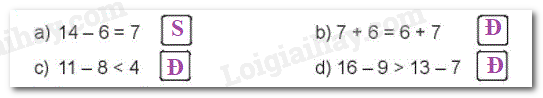 – Tính nhẩm kết quả các phép tính rồi so sánh hai vế với nhau.