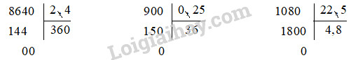 \(864 : 2,4\)                               \(9 : 0,25\)                             \(108 : 22,5\)