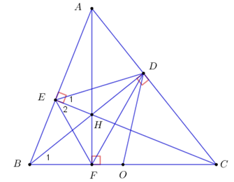 Cho tam giác ABC có ba góc nhọn (AB < AC), các đường cao AF, BD và CE cắt nhau tại H.