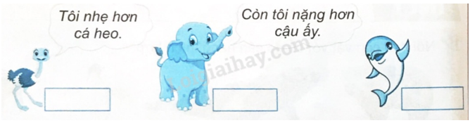 So sánh cân nặng các con vật rồi trả lời yêu cầu đề bài.
