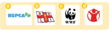 5. a) Look at the logos of four organisations. Which organisation helps people? Which helps animals?
