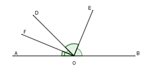 Giả thiết: Cho góc bẹt \(AOB\) và tia \(OD.\) \(OE\) là phân giác góc \(BOD\); \(OF\) là phân giác góc \(AOE\).