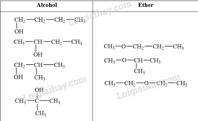 Xác định loại đồng phân cấu tạo có thể có và viết các đồng phân cấu tạo có thể có của các hợp chất có công thức phân tử C4H10O.