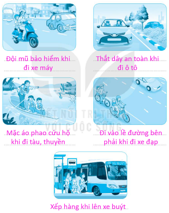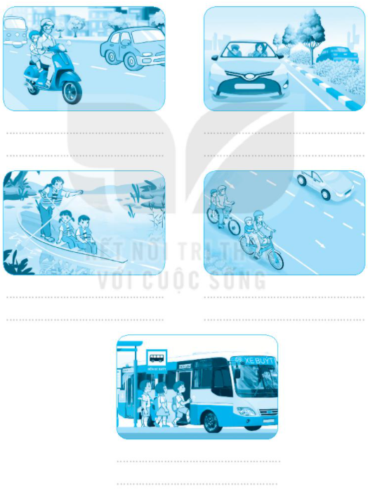 Viết vào chỗ (…) dưới mỗi hình về quy định khi đi trên các phương tiện để đảm bảo an toàn giao thông.