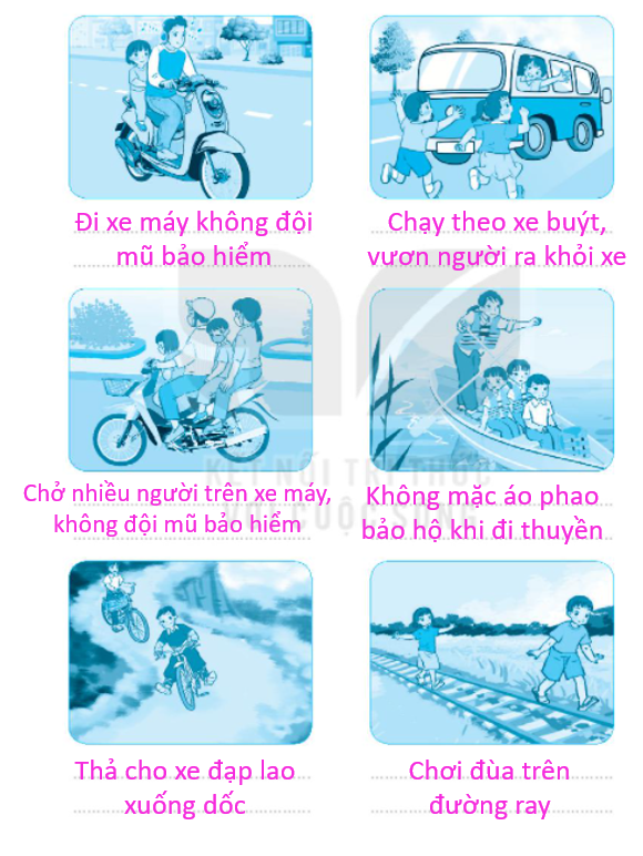 Viết vào chỗ (…) dưới mỗi hình những tình huống tham gia giao thông không đúng quy định.