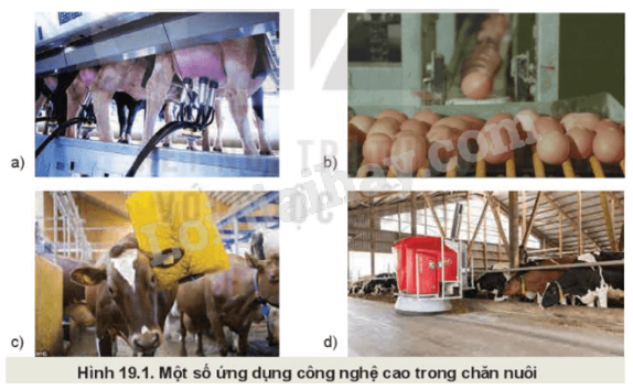 Quan sát Hình 19.1 và nêu những công nghệ cao được ứng dụng trong chăn nuôi phù hợp với từng ảnh trong hình.
