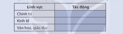 1. Lập và hoàn thành bảng tóm tắt (theo gợi ý dưới đây) về những tác động của cuộc khai thác thuộc địa lần thứ nhất của thực dân Pháp đối với Việt Nam.