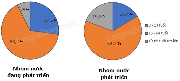 – Tỉ trọng nhóm tuổi từ 0 – 14 tuổi ở nhóm nước đang phát triển cao hơn nhóm nước phát triển, cao hơn 10,8%.