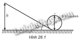 Một ô tô mô hình được thả nhẹ từ trạng thái nghỉ từ độ cao h của một cái rãnh không ma sát. Rãnh được uốn thành đường tròn có đường kính D ở phía cuối như trên Hình 26.1. Ô tô này trượt trên rãnh được cả vòng tròn mà không bị rơi. Giá trị tối thiểu của h là