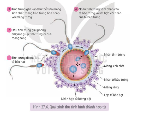 – Nhân tinh trùng xâm nhập vào tế bào trứng và kết hợp với nhân của tế bào trứng.