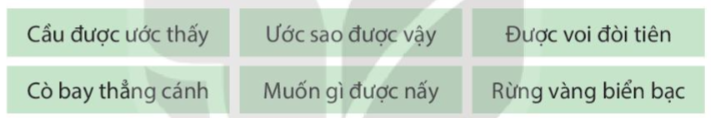 Em tìm kiếm những thành ngữ nói về mơ ước trong những thành ngữ trên.