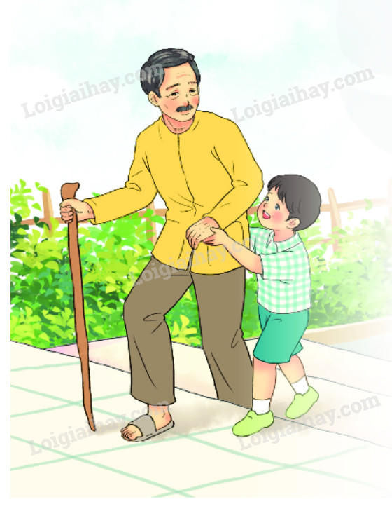 b. Để ông vịn vào vai mình rồi đỡ ông lên