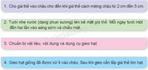 3. Chuẩn bị vật liệu, vật dụng và dụng cụ gieo hạt.