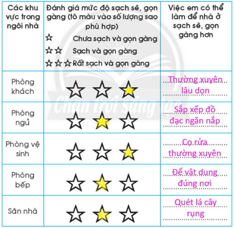Em dựa vào sự quan sát ngôi nhà của mình để hoàn thành bảng