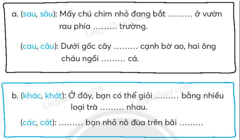 Chọn tiếng trong ngoặc đơn rồi điền vào chỗ trống: