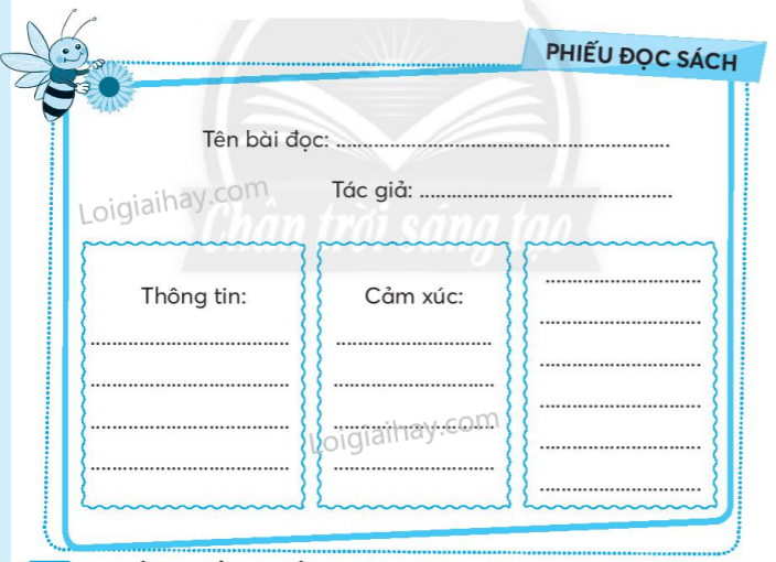 Viết vào Phiếu đọc sách những điều em đã chia sẻ với bạn sau khi đọc một bài đọc và thiên nhiên.