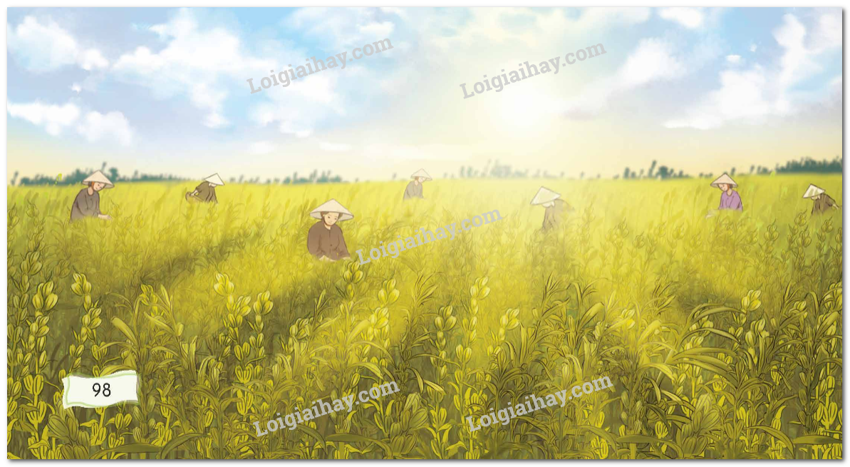 – Trông ra chân trời bừng ánh ban mai, cả cánh đồng vùng như một tấm giấy kim tuyến lớn, tươi vàng, lấp lánh.