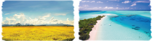 – Hồ I-xức-kun: mặt hồ xanh biếc, sóng xanh bạc đầu, bờ cát vàng, khoảng nước phía xa như nhuộm hồng.