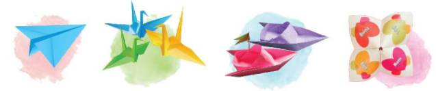 Đồ chơi gấp bằng giấy em thích: Gấp thuyền giấy, gấp hoa giấy, gấp giấy đông – tây – nam – bắc, gấp máy bay giấy, gấp thuyền giấy, gấp ngôi sao.
