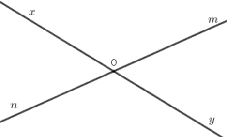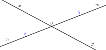 Vẽ hai đường thẳng \(xy\) và \(mn\) cắt nhau tại \(O.\)