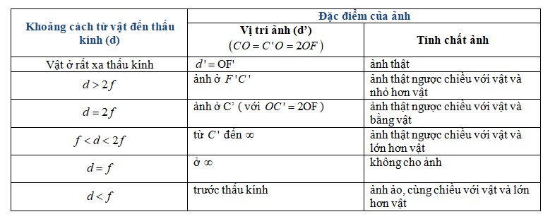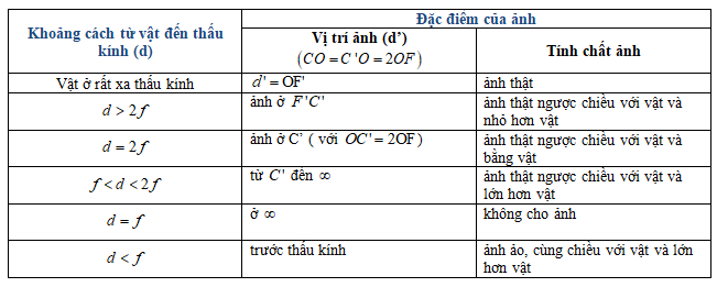 + Khi vật đặt rất xa thấu kính thì ảnh thật có vị trí cách thấu kính một khoảng bằng tiêu cự.