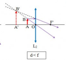 Khi đặt vật trong khoảng tiêu cự => ảnh là ảnh ảo, cùng chiều với vật, lớn hơn vật