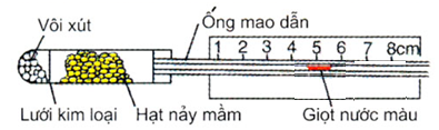 giọt nước màu trong ống mao dẫn bị đẩy dần sang vị trí số 6,7,8.