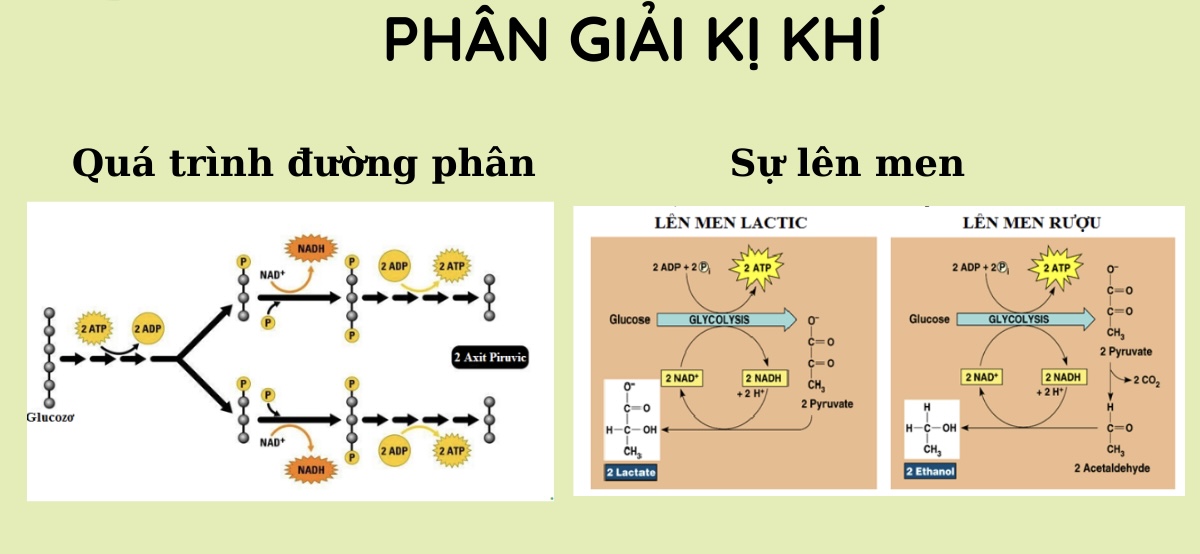 Sản phẩm của phân giải kị khí: rượu etylic + CO2 + năng lượng