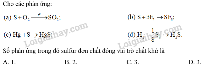 Sulfur đóng vai trò chất khử khi tác dụng với đơn chất O2.