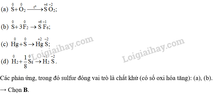 Sulfur đóng vai trò chất khử khi tác dụng với đơn chất có tính oxi hóa.