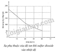 Sự phụ thuộc của độ tan khí sulfur dioxide trong nước vào nhiệt độ được mô tả ở đồ thị bên.