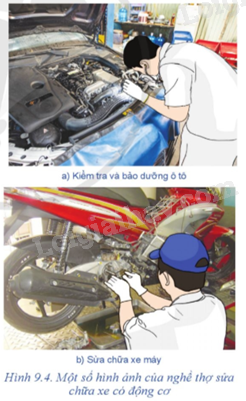 Dựa vào hình 9.4 để xác định những công việc của thợ sửa chữa xe có động cơ.