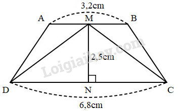 Diện tích của hình thang ABCD lớn hơn diện tích của hình tam giác MDC bao nhiêu xăng-ti-mét vuông (xem hình vẽ bên) ?