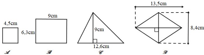 Hình A :               4,5 × 4,5 = 20,25 (cm2)
