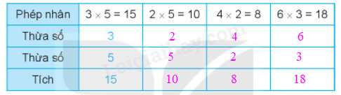 Từ các thừa số là 5, 4, 3, 2 và các tích là 8, 15, em hãy lập hai phép nhân thích hợp?