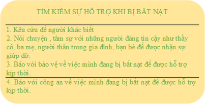 Lập bản hướng dẫn tìm kiếm sự hỗ trợ khi bị bắt nạt.