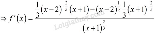 Câu 4. Cho \(f(x) = \root 3 \of {{{x – 2} \over {x + 1}}} \). Đạo hàm f’(0) bằng: