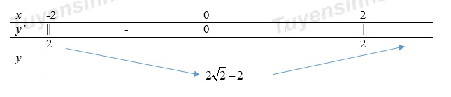 Xét hàm số \(y = \sqrt {2 – x} + \sqrt {2 + x} – \sqrt {4 – {x^2}} \) trên \(\left[ { – 2;2} \right]\), ta có: