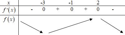 Câu 8: Cho hàm số \(y = f\left( x \right)\) có đạo hàm \(f’\left( x \right) = {\left( {x + 1} \right)^2}\left( {2 – x} \right)\left( {x + 3} \right).\)Mệnh đề nào dưới đây đúng?