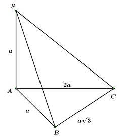 Câu 17: Cho khối chóp S.ABC có \(SA \bot \left( {ABC} \right)\), \(SA = a\), \(AB = a\), \(AC = 2a\), \(BC = a\sqrt 3 .\) Tính thể tích khối chóp S.ABC.