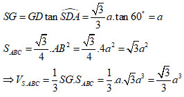 Lại có:\(AD = \dfrac{{\sqrt 3 }}{2}BC = \sqrt 3 a \Rightarrow DG = \dfrac{1}{3}AD = \dfrac{{\sqrt 3 }}{3}a\).