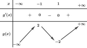 Xét hàm \(g\left( x \right) = {x^3} – 3x\) có \(g’\left( x \right) = 3{x^2} – 3 = 0 \Leftrightarrow x = \pm 1\)