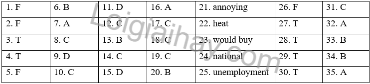 I. Listen and decide if the following sentences are True (T) or False (F).