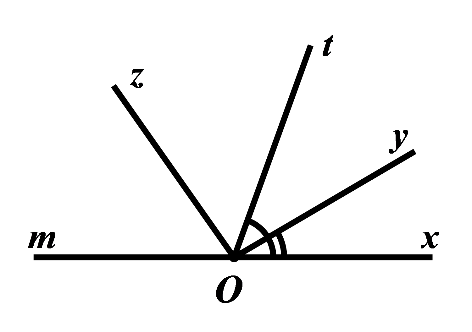 Cho \(\angle xOy = {30^0}\), vẽ góc \(\angle xOt = {70^0}\) sao cho tia \(Oy\) nằm giữa hai tia \(Ox\) và \(Ot\).