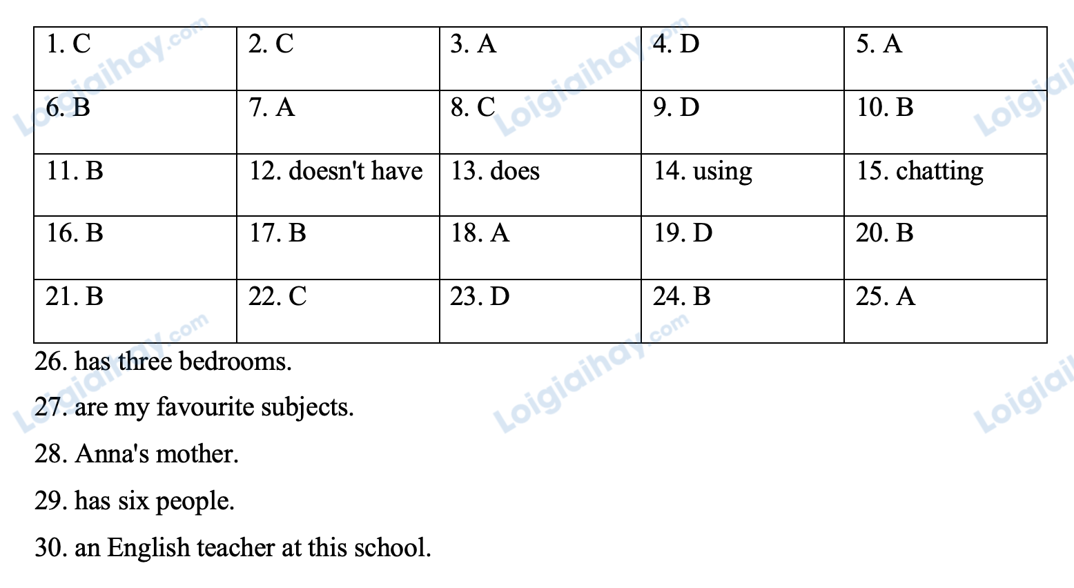 Giải thích: Chủ ngữ “school” là danh từ số ít nên cần chia động từ => vị trí còn trống cần điền một động từ mang nghĩa “bắt đầu” đuôi -s/es.