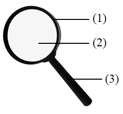 Câu 11: Điền tên các bộ phận của kính lúp cầm tay tương ứng với các vị trí (1), (2), (3)