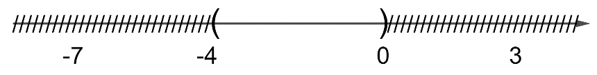 Câu 6: Biểu diễn trên trục số các tập hợp \(\left[ { – 7,3} \right]\backslash \left[ { – 4,0} \right]\) là hình nào dưới đây.