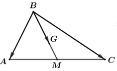 \( \Rightarrow \overrightarrow {BG} {\rm{\;}} = \frac{2}{3}\overrightarrow {BM} {\rm{\;}} = \frac{2}{3} \cdot \left( {\frac{1}{2}\overrightarrow {BA} {\rm{\;}} + \frac{1}{2}\overrightarrow {BC} } \right) = \frac{1}{3}\overrightarrow {BA} {\rm{\;}} + \frac{1}{3}\overrightarrow {BC} \)