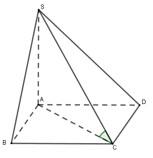 Câu 12: Cho khối chóp \(S.ABCD\) có đáy \(ABCD\) là hình chữ nhật, biết \(AB = a,AD = a\sqrt 3 \), \(SA\) vuông góc với mặt phẳng đáy và \(SC\) tạo với đáy một góc \(60^\circ \). Thể tích của khối chóp \(S.ABCD\) bằng