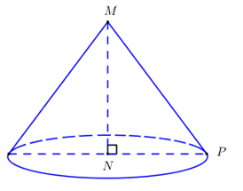 Khi xoay tam giác \(MNP\) vuông tại \(N\) quanh đường thẳng \(MN\) ta được hình nón có chiều cao \(h = MN = 4a\) và bán kính đáy \(R = NP = 3a\).